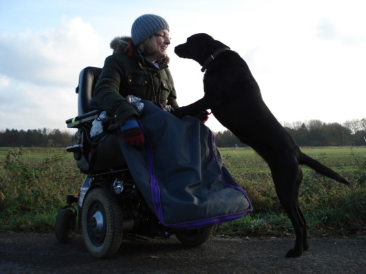 Doch Emily unterstützte mich nicht nur in praktischer Hinsicht. Mit ihr an meiner Seite begann ich wieder vor die Tür zu gehen. Mehrmals täglich, bei Wind und Wetter, zu jeder Jahreszeit war ich fortan mit Ihr auf Tour. Sie hat meine Liebe zur Natur entfacht – gemeinsam haben wir die Welt um uns herum entdeckt, dabei jedem Wetter getrotzt und die Schönheit des Moments genießen gelernt. Es verging kein Spaziergang mehr, an dem ich nicht mit anderen Hundebesitzern ins Gespräch kam. Plötzlich war der Rollstuhl keine Barriere mehr im Kontakt zu Fußgängern. Die Hemmungen und Vorurteile auf beiden Seiten wurden einfach sekundär, durch diese schwarze Schönheit an der Seite meines Rollstuhls. Im Kontakt mit anderen gab sie mir die nötige Sicherheit und ich traute mir über die Zeit immer mehr zu. Emily öffnete für mich Türen in vielerlei Hinsicht!