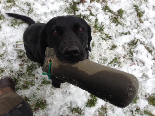 Als Ausgleich zum stressigen Alltag fröhnen wir, bei jeder sich bietenden Gelegenheit, unserem gemeinsamen Hobby, der Dummyarbeit! Dabei wird für den Hund eine Jagdsituation simuliert. Die Dummys (kleine und bis zu 500g schwere, mit Sand gefüllte Segeltuchsäckchen) ersetzen das erlegte Wild und werden von Retrievern mit der gleichen Begeisterung apportiert. Für mich ist es eine kostbare Gelegenheit, Emily nahe zu sein, sie gleichzeitig körperlich und kopfmäßig auszulasten und ihre Freude und ihr Glück am apportieren zu teilen.
